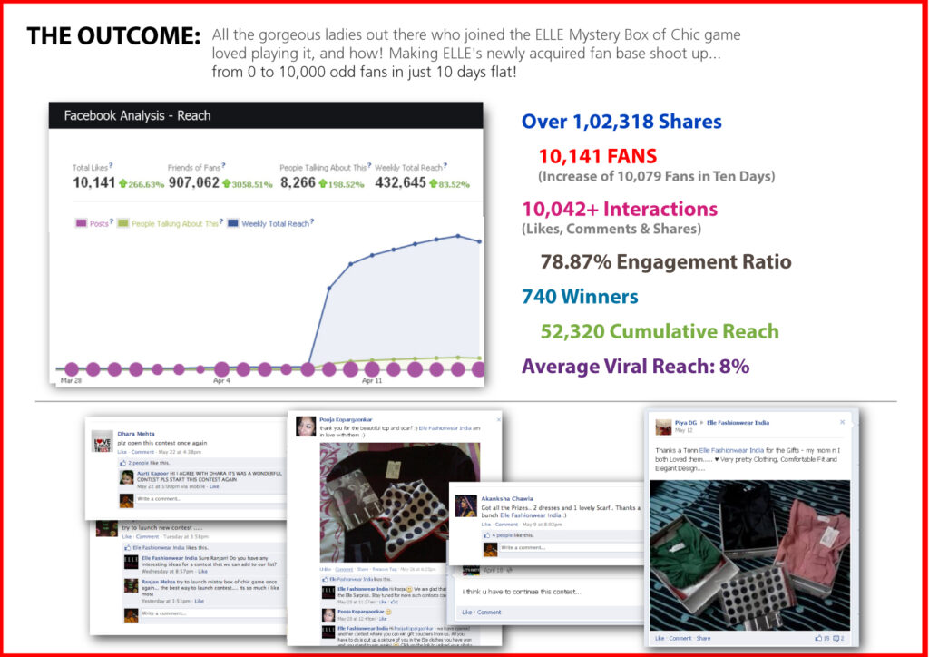 Early days of FB in India, we had the freedom of doing virality with content, with zero budget in advertising. We achieved a huge fan following for the brand page and website registrations. We used several tactics, incentives, freebies, sales, exclusive offers, referral programs etc.